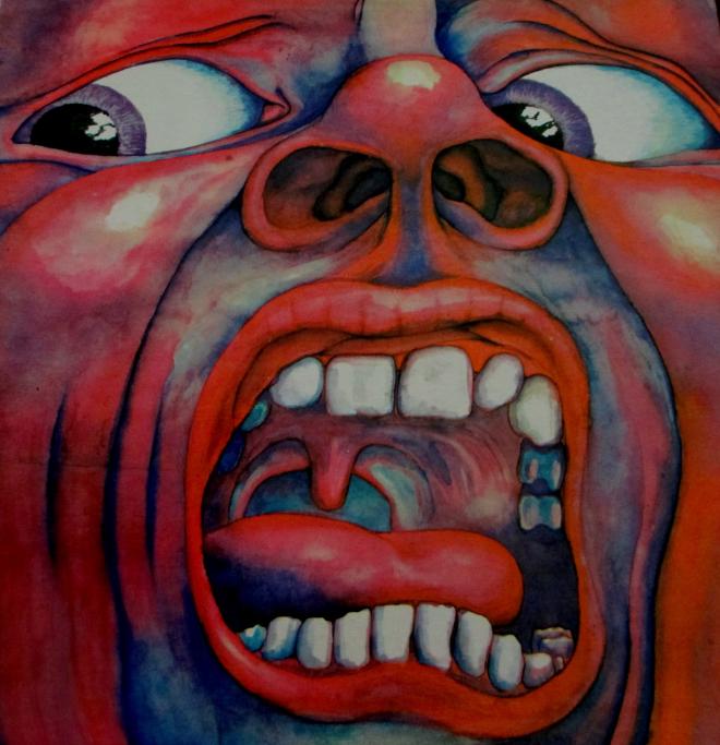 So, I stumbled across the second Grinderman album because of the cover art. I mean, who wouldn’t be intrigued by a wolf hanging out in a room full of marble and mirrors? The Heathen Child track was an instant ear worm, and became one of my favorite songs in general. Eventually I noticed that there were two “Heathen Child” tracks, with one of them being a so-called “bonus track” titled Super Heathen Child. The thing that made it super was the inclusion of an extended guitar solo by Robert Fripp. I originally knew of him via King Crimson, specifically the 21st Century Schizoid Man album. I stumbled across it in high school when perusing the local record store (yeah kids, back in the long long ago the way one found new music was by flipping through boxes of 12” vinyl records). Unsurprisingly, it was yet another case of me buying an album based entirely on its cover. I mean, who wouldn’t want to know what kind of sounds were waiting to be discovered underneath a cover like this?