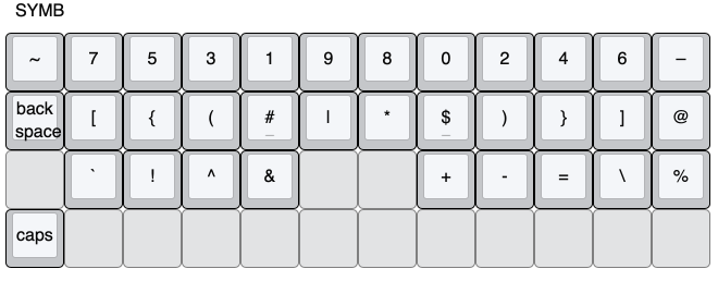 The Planck is exactly like the Preonic except it’s missing a row, having 48 instead of 60 keys, assuming a full grid layout. When considering that maybe I didn’t need a dedicated number row it was trivial to do a trial run. As with most things it’s easier to pare down than build up. All that was needed was to turn each key in the number row into a no-op, and move the numbers to a layer of the first row above the home row. That way if the layout was unwieldy all that was needed was to load the keyboard with the previous configuration, and all would be well. As it turned out, after about a week I found myself not missing the number row at all. One of the advantages of an ortholinear layout is ones fingers only have to flex at the knuckle to change rows, at opposed to flex and reach with a traditional staggered layout. By not having a number row, the fingers only have to flex one row up or down from home. Once I got used to is, I found it to be a very comfortable arrangement.